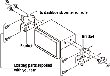 Kun asennat tämän laitteen autosi esiasennettuihin kiinnikkeisiin, käytä kiinnitysruuveja