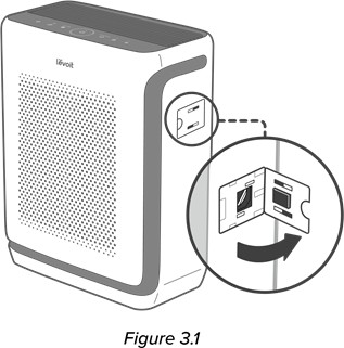 - Virtalähteen irrottaminen pistorasiasta poistaa ilmanpuhdistimen kauko-ohjauksen käytöstä ja katkaisee väliaikaisesti ilmanpuhdistimen yhteyden VeSynciin ja muihin kolmannen osapuolen sovelluksiin.