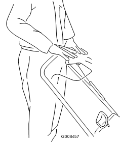 - Pyörivä kaira voi vahingoittaa käsiä tai jalkoja. Pysy kahvojen takana ja poissa poistoaukon läheltä käyttäessäsi konetta. Pidä kasvosi, kätesi, jalkasi ja muut kehonosasi tai vaatteesi etäällä liikkuvista tai pyörivistä osista.