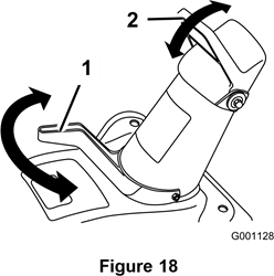 Säädä poistokourua siirtämällä kourun kahvaa ja kourun ohjaimen kahvaa kuvan mukaisesti (kuva 18).