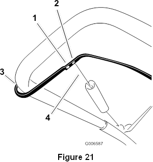 Huomautus: Varmista, että käyttöhihna on säädetty oikein ja toimii; katso Ohjauskaapelin tarkistaminen ja Ohjauskaapelin säätäminen.