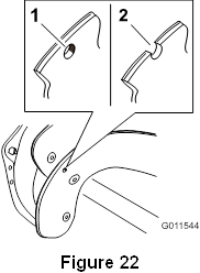 Huomautus: Pieni ruuvi menee heittoputken tiivisteen pienen reiän läpi heittoputken aukon etuosassa.