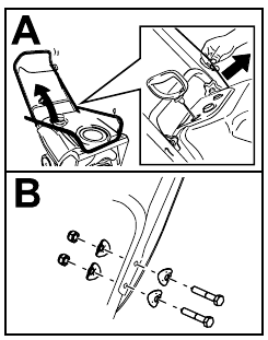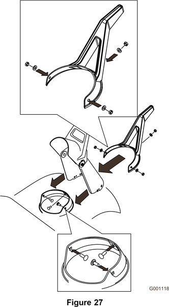 - Asenna putken tiiviste, heittoputki ja heittoputken kahva koneeseen käyttämällä vaiheessa 3 irrottamiasi kiinnitystarvikkeita.