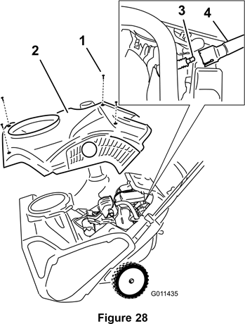 Huomautus: Varmista, että huohotinletku on reititetty sytytystulpan johdon yläpuolelle kuvan 30 mukaisesti.