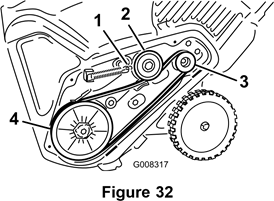 - Irrota jarrunjousi välihaarasta vapauttaaksesi hihnan kireyden (kuva 31).