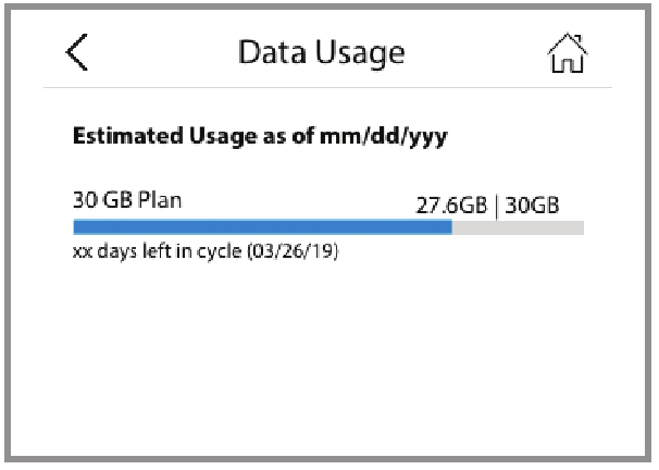 Vous pouvez vérifier votre niveau d'utilisation estimé et surveiller les données utilisées sur votre MiFi en appuyant sur Menu > Data Usage (Menu > Utilisation des données). Vous devrez définir votre limite de données et la date de début d'utilisation pour afficher le compteur d'utilisation des données.