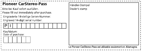 | Fabricant : Pioneer Corporation 28-8, Honkomagome 2-chome, Bunkyo-ku, Tokyo 113-0021, JAPAN | Représentant et importateur de l'UE : Pioneer Europe NV Haven 1087,Keetberglaan 1, 9120 Melsele, Belgium ttp://www.pioneer-car.eu |
