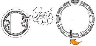 - Si vous avez acheté l'avertisseur WIRELESS INTERCONNECT avec pile de secours câblée, vous pouvez maintenant connecter l'avertisseur câblé en installant le connecteur à trois fils du plafond à l'avertisseur.