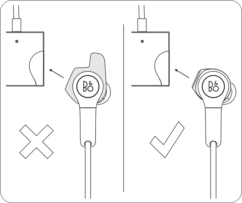 Pour éteindre les écouteurs, connectez les deux extrémités magnétiques des oreillettes. Un son est émis et l'indicateur s'éteint progressivement. Le Beoplay H5 s'éteint automatiquement après plus de 15 minutes d'inactivité. Le Beoplay H5 peut être porté autour du cou en connectant les deux oreillettes.