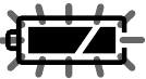 ![]() | Épuisée. Remplacez par une nouvelle pile. Lorsque vous appuyez sur POWER (Mettre sous/hors tension) après avoir installé la nouvelle pile, l'indicateur passe à " ".Lorsque la pile est épuisée, l'appareil émet un long bip, puis s'éteint. |