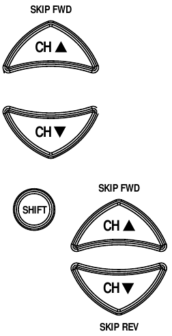 Lorsque vous contrôlez un lecteur DVD, utilisez **SKIP FORWARD** (Avance rapide) pour passer au chapitre DVD suivant, utilisez **SKIP REVERSE** (Retour rapide) pour revenir au dernier chapitre DVD.