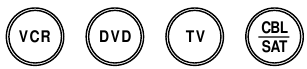 Appuyez une fois sur **VCR**, **DVD**, **TV** ou **CBL/SAT** pour sélectionner un appareil de divertissement à domicile à contrôler.