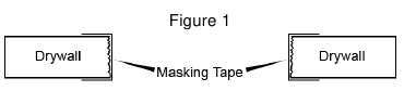 À l'aide d'une scie à plaque de plâtre, effectuez la découpe de montage selon le contour du gabarit. Assurez-vous de couper la plaque de plâtre à un angle de 90 degrés. Coupez tous les morceaux de plaque de plâtre déchiquetés ou lâches. Couvrez les bords coupés de la plaque de plâtre avec des bandes de ruban de masquage, en repliant les bords sur les côtés avant et arrière de la plaque de plâtre (Voir Figure 1). Cela empêchera le plâtre de la plaque de plâtre de se détacher en raison des vibrations de l'enceinte. Ne laissez pas le bord du ruban de masquage dépasser de plus de ¼" au-delà de la découpe sur la surface extérieure du mur. Le ruban de masquage à moins de ¼" de la découpe sera caché par le cadre de l'enceinte.