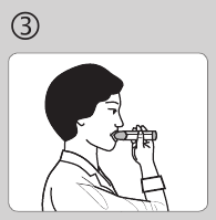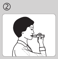 - ‚ Tenez-vous debout, prenez une profonde inspiration, placez votre bouche autour de l'appareil de mesure du débit de pointe et maintenez-le horizontalement, vos lèvres formant un joint étanche.