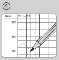 - „ Répétez les étapes 1, 2, 3 deux fois de plus pour obtenir trois lectures. Enregistrez la lecture la plus élevée dans votre tableau d'enregistrement quotidien.