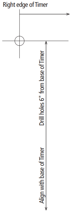 - Insérez deux vis n° 6 de 3/4 de pouce (vendues séparément) à 1-7/8 de pouce l'une de l'autre le long d'une ligne horizontale à 6 pouces au-dessus de l'emplacement du bas de la Minuterie extérieure à piquet. Laissez les têtes de vis dépasser de 1/4 de pouce de la surface de montage.