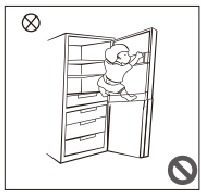 - Ne laissez aucun enfant entrer ou grimper dans le réfrigérateur ; sinon, cela pourrait entraîner une suffocation ou une blessure due à une chute de l'enfant.