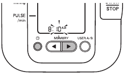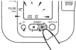 - Le numéro de la valeur de mesure est affiché brièvement dans la zone d'affichage du pouls lorsque vous appuyez sur les boutons Haut/Bas (