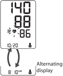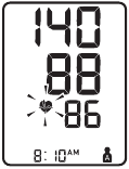 ) clignote sur l'affichage avec votre tension artérielle et votre pouls si la lecture est supérieure à 135 pour la valeur de la tension artérielle systolique et/ou supérieure à 85 pour la valeur de la tension artérielle diastolique.