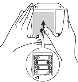 sur le couvercle du compartiment des piles et faites glisser le couvercle dans le sens de la flèche pour le retirer.