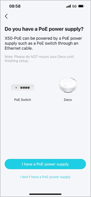 Connectez un câble Ethernet du commutateur PoE (conforme à 802.3at) au port Ethernet du Deco. La puissance ne doit pas être inférieure à 18 W.