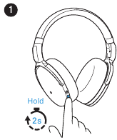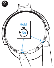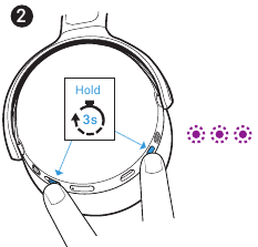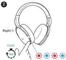 - Mettez le casque hors tension (appuyez et maintenez le bouton on/off (marche/arrêt) pendant 2 secondes), puis démarrez le mode d'appairage (appuyez et maintenez le bouton on/off (marche/arrêt) pendant 4 secondes) (> 17 et 14).