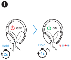 - Appuyez et maintenez simultanément le bouton on/off (marche/arrêt) et la partie arrière du bouton de volume (Volume +) pendant au moins 5 secondes. La réinitialisation est terminée. Continuez à utiliser le casque normalement.