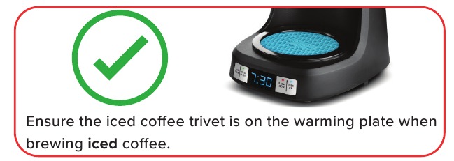 - Assurez-vous que le support pour café glacé est sous la verseuse remplie de glace avant de préparer du café glacé.