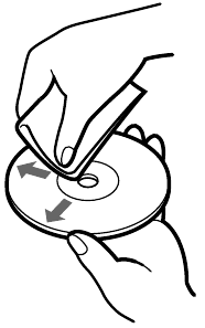 - Avant de lire, nettoyez le CD avec un chiffon de nettoyage. Essuyez le CD du centre vers l'extérieur. Si le CD présente une rayure, de la saleté ou des traces de doigts, cela peut entraîner une erreur de lecture.