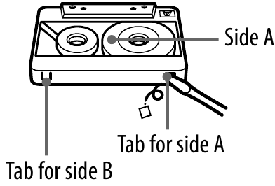 - Cassez la languette de la cassette du côté A ou B pour éviter un enregistrement accidentel. Si vous souhaitez réutiliser la bande pour l'enregistrement, couvrez la languette cassée avec du ruban adhésif.