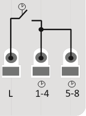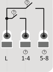 One external clock which is common for thermostats from Group 1 and Group 2 (one external clock + daily regulators e.g. VS35).