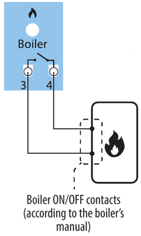 - Connecting ON/OFF battery-powered thermostat with voltage-free COM / NO output contacts (e.g. 091FL, RT310, RT510)