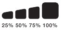 When recharging, the charge level of the internal battery is indicated by the Charge LEDs. The LEDs will slowly pulse 'On' and 'Off' and become solid until all four Charge LEDs are on. When the battery is fully charged, the Green 100% LED will be solid, and the 25%, 50% and 75% Charge LEDs will turn "Off". From time to time, the Green 100% LED will pulse indicating maintenance charging is occuring.