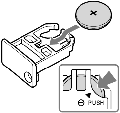 side facing up. To remove the battery from the battery compartment, push it out from the side marked PUSH.