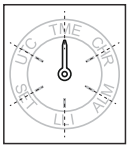 Using the "0:00:00" position as the starting point, the minute and second hands indicate the leap second setting.