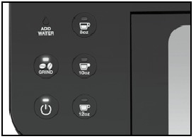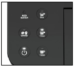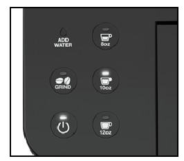 NOTE: Brewing process can be stopped during brewing. Simply press selected Brew Size button again to stop brewing. - When the brewing process is complete, all Brew Size buttons will go off. The Grind button will remain on for use until the brew head lever is opened to begin brewing process