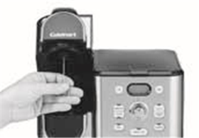 | Pod brewer has a slow stream of water, makes a short cup, or sputters as it brews. | The piercing or exit needle may be clogged with coffee. Remove the pod capsule holder from your unit and then twist off the funnel that makes up the bottom portion on the holder. Use a paper clip to loosen the clog and push it out. See your instruction booklet and follow steps 1–4. |