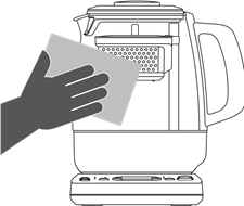 - Wipe the exterior of the glass jug with a soft damp cloth to clean.