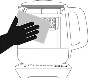 - Wipe the exterior of the glass jug with a soft damp cloth to clean.