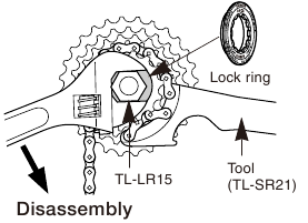 For installation of the HG sprockets, use the special tool (TL-LR15) to tighten the lock ring.
