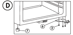 - Remove the solid foot from the lower left side of the appliance and the adjustable foot and lower hinge from the lower right side of the appliance. Swap their positions and reinstall them. See figure D.