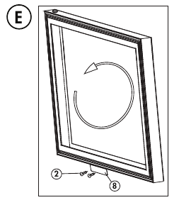 - Remove the actuator from the bottom of the door and install it on the top of the door. Screw holes can be found at the top of the door by gently pulling back the rubber gasket. Before reinstalling the door on the appliance, it must be flipped 180° from its original position to ensure that the handle is on the correct side and that the actuator is at the bottom. See figure E.