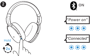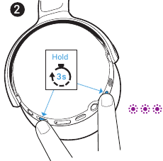The LED flashes purple 3x. The Bluetooth pairing list is deleted. The headphones then stay in Bluetooth pairing mode.