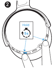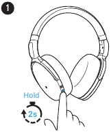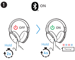 - Switch off the headphones (press and hold the on/off button for 2 seconds) and then start pairing mode (press and hold the on/off button for 4 seconds).
