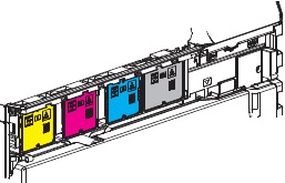 Be sure to install the color cartridge to their proper positions. Avoid installation to a different color position.