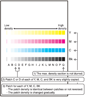 Enter the calculated adjustment values for the shift amount to MAIN-CS2/SUB-CS2, and tap OK button. (The cursor can be used instead of the button.) - After entering the adjustment values, print again and check to confirm that the avoid amounts are adjusted to the target range.