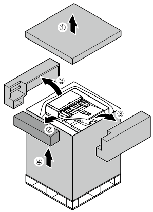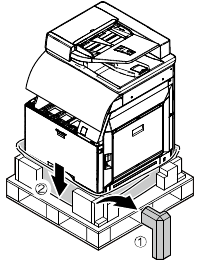 When an optional paper feed desk is connected to the machine, unpack and install the paper feed desk, then unpack the machine.