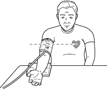 - Keep the arm with the cuff attached at the level of the heart.