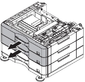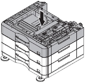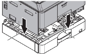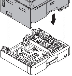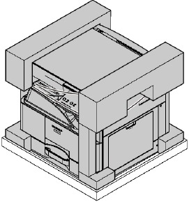 * When connecting the main unit with the optional paper drawer, first unpack and install the paper drawer, then unpack the main unit and securely place the main unit on the paper drawer before installing the main unit.