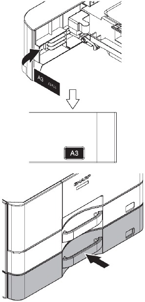 - Attach the size display sheet to the tray and return the tray to the BP-CS11.